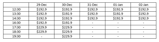 · Additional evening slots on Dec 29 & 30: 16:30 / 17:30 / 18:30 / 19:30