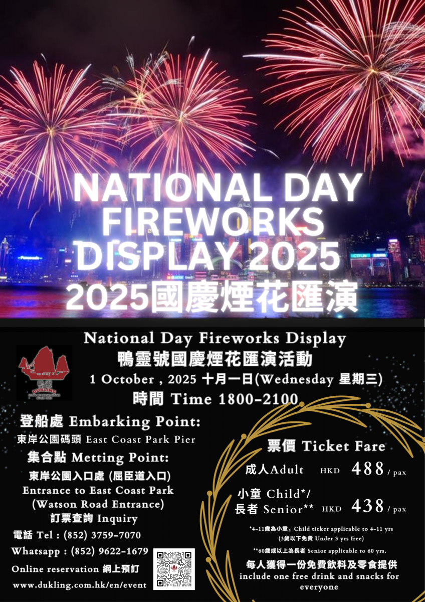 ***Please note if the event have fewer than 6 participants are reserved, Dukling reserves the right to cancel the Dukling National Day Fireworks Display 2025 and arrange the related refund. (reservation deadline: 30th September 2025)